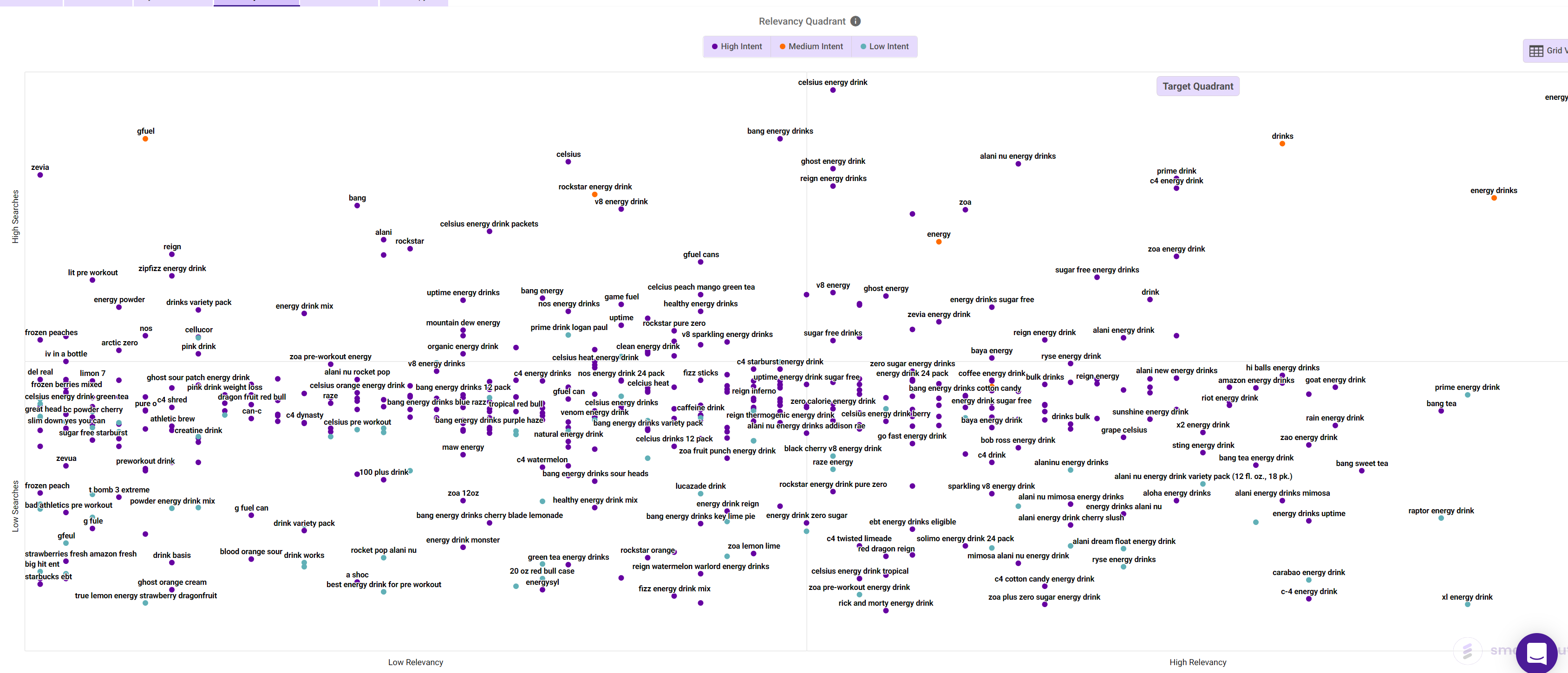 We want you to be there so we built a relevancy quadrant. This lays out every keyword by search volume and relevancy to a product.